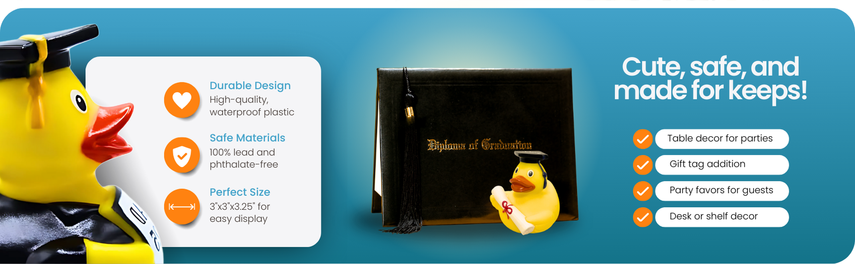 GraDuckies 🎓 2025 🎓 GraDuckies 🎓 2025 🎓 GraDuckies 🎓 2025 🎓 Our Memorable Ducks This Year!As always, we prototype and develop all of our ducks ourselves! Rubber Duck (Diploma) Buy on Amazon Rubber Duck (Scroll) Buy on Amazon